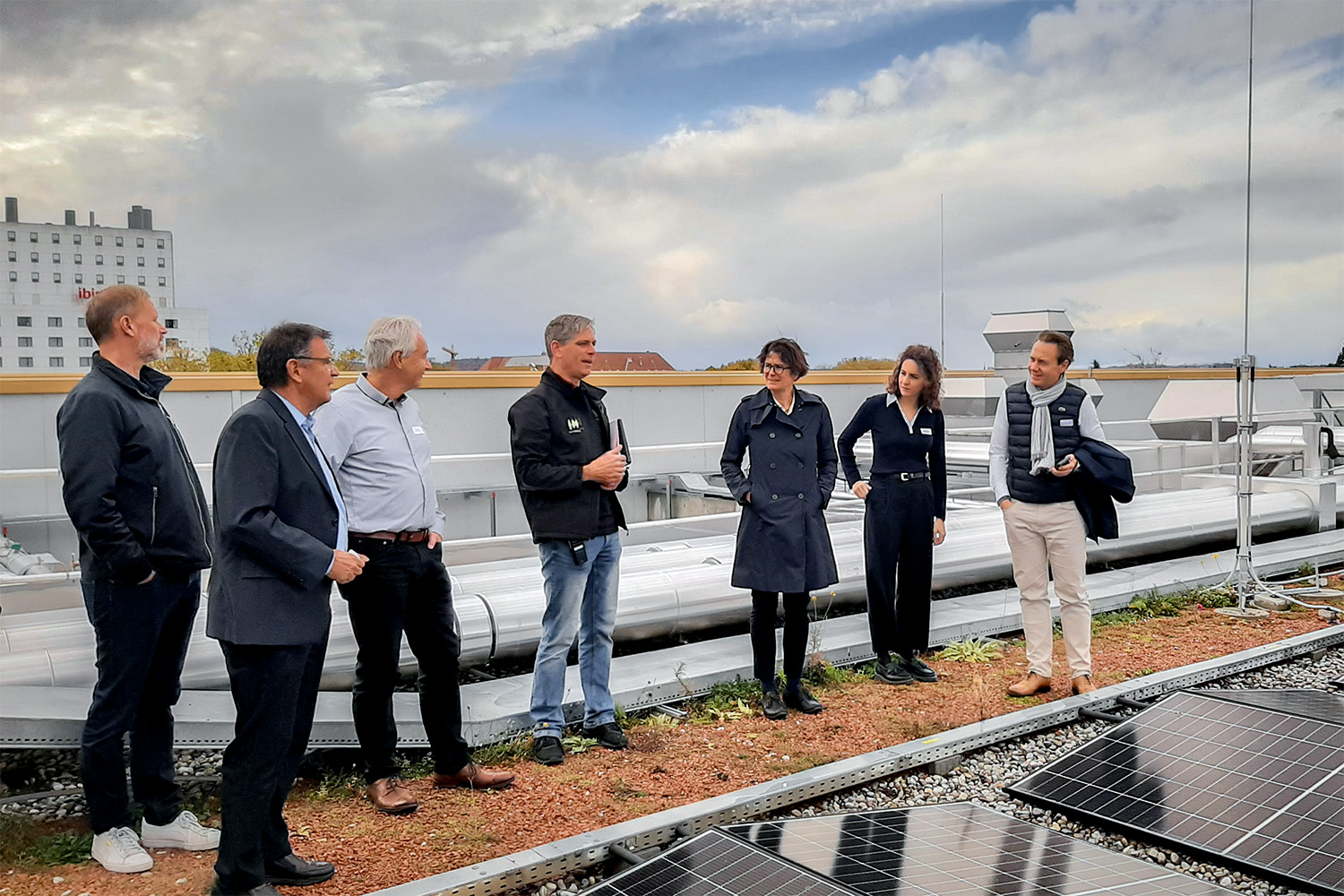 Die Führung durch die Festhalle bot den Teilnehmenden Gelegenheit, die Solaranlage, die Dachbegrünung und die verschiedenen Veranstaltungsräume aus nächster Nähe kennenzulernen. Beim gemeinsamen Lunch bot sich Raum für persönlichen Austausch und vertiefende Gespräche.