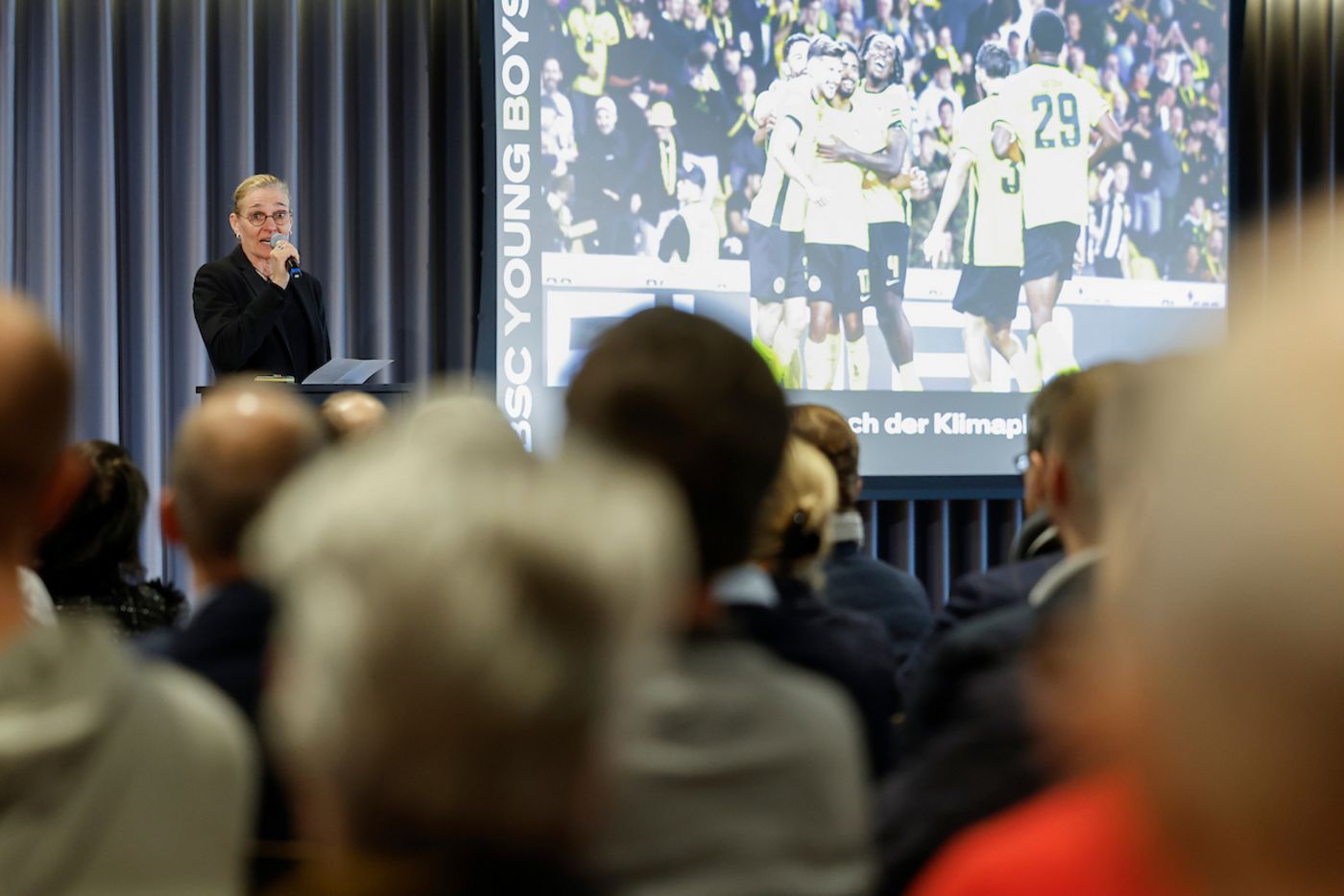 Eröffnet wurde der Anlass von Gemeinderat Alec von Graffenried und Ursula Friedmann, Chief Non Sports des BSC Young Boys. Alec von Graffenried stellte seine Ausführungen unter das Zitat «With great power comes great responsibility». «YB ist wichtig für die Stadt Bern», so von Graffenried. Der Club verbinde Menschen über alle gesellschaftlichen Schichten hinweg und entfalte eine starke integrative Wirkung. Gleichzeitig übernehme YB ökologische Verantwortung – unter anderem mit der grössten Photovoltaikanlage der Stadt Bern und ambitionierten Klimazielen. Dass ein nachhaltiges Geschäftsmodell auch wirtschaftlich funktioniere, zeige YB eindrücklich.